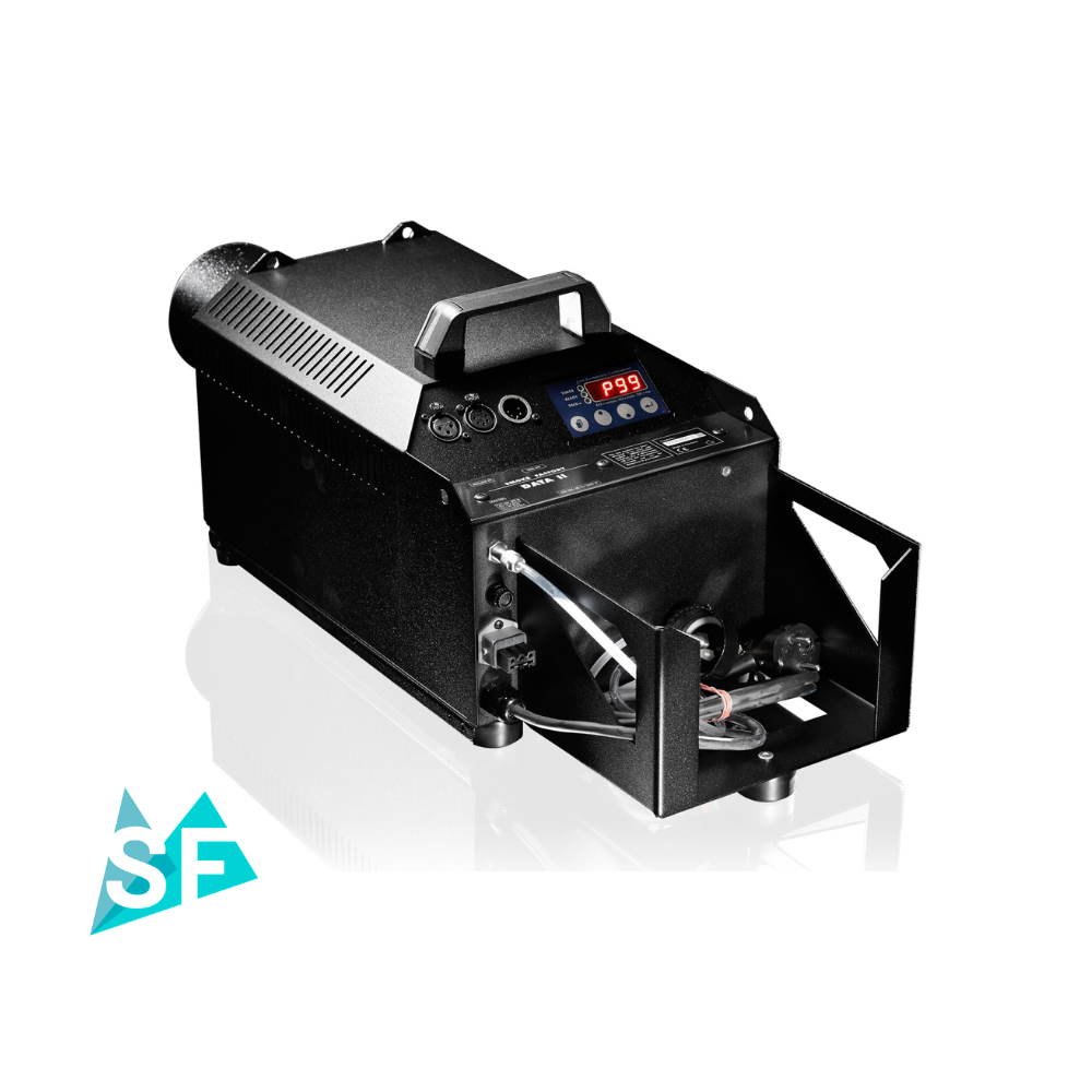 DMX, timer and hose cover as standard. Continuous fog with reduced output.