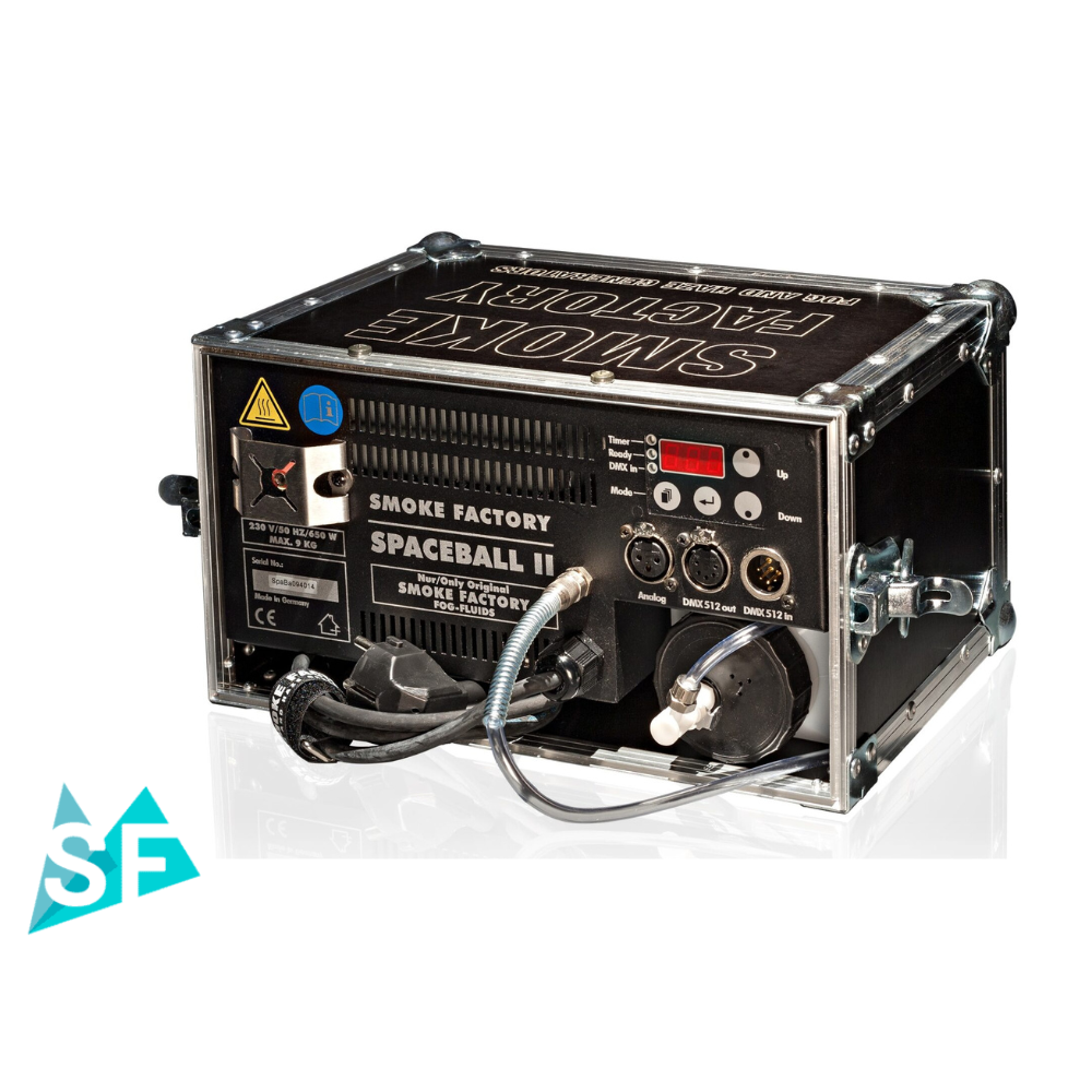 Da die Spaceball II, wie alle Smoke Factory Geräte auf jede Seite gekippt und betrieben werden kann, wodurch sie sich im vertikalen Betrieb ausgezeichnet eignet um einen Fontäneneffekt auf der Bühne zu erzeugen. Im Zusammenspiel mit unserem Fast Fog EXTRA wird so ein CO2 ähnlicher Effekt erzielt. Wird hingegen das Heavy Fog PLUS eingesetzt, kann mit dem kleinen Gerät schnell ein kleines Einfamilienhaus für eine Brandübung vernebelt werden.